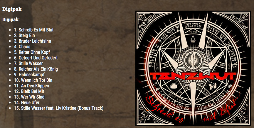 TANZWUT made the following official video (not for youth) for their album entitled "Schreib es mit Blut"